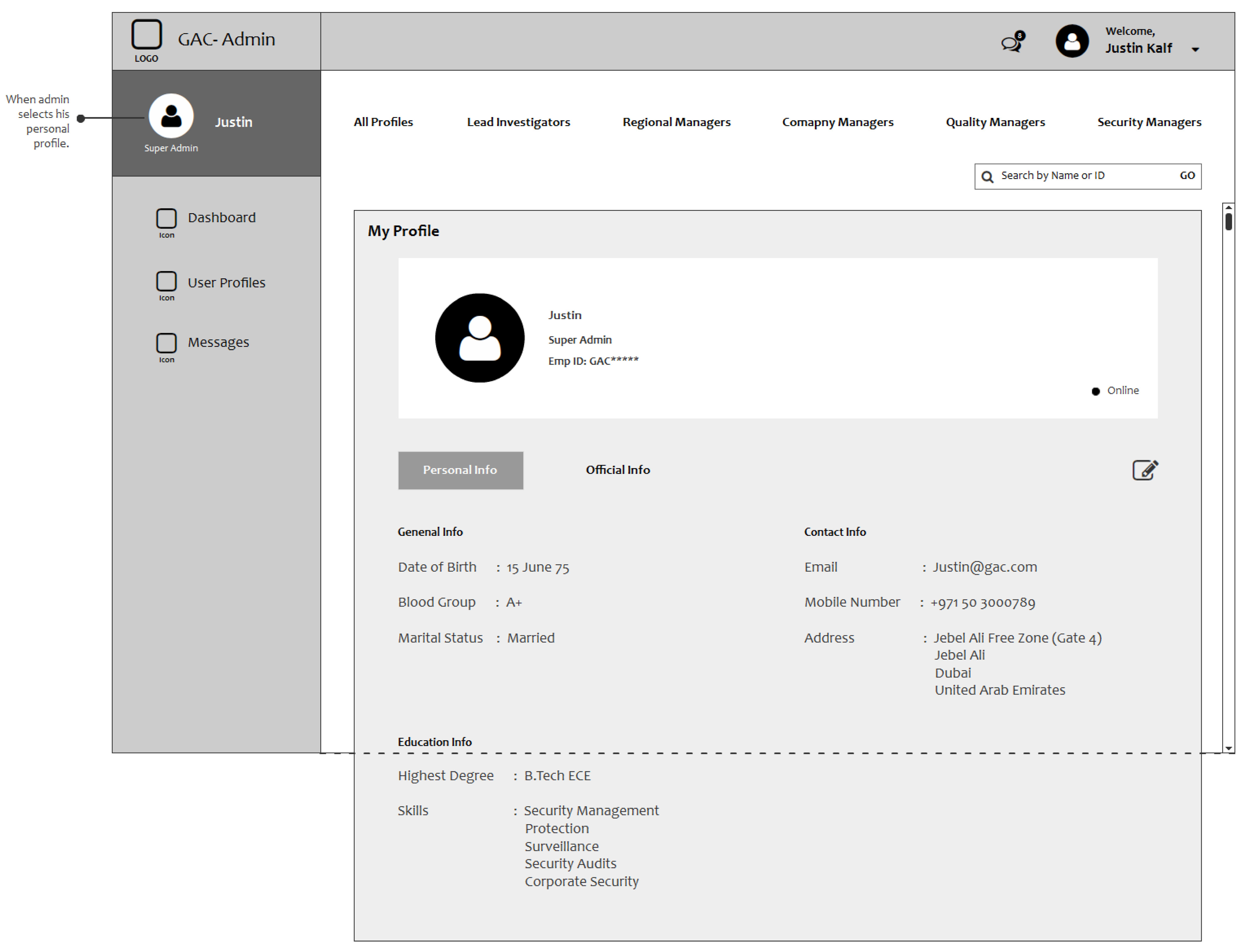 Gulf Agency Company (Dubai) - User Management Wireframe