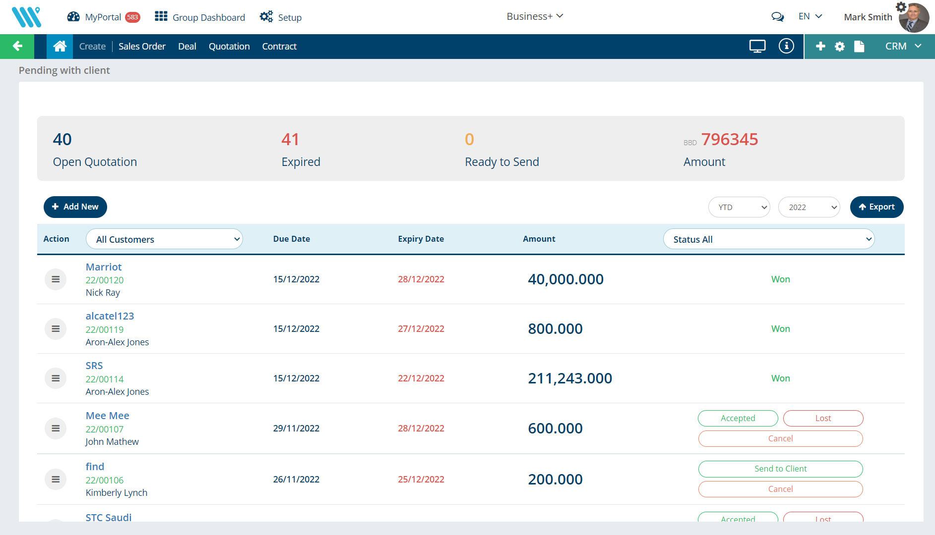 CRM - Pending with Clients List